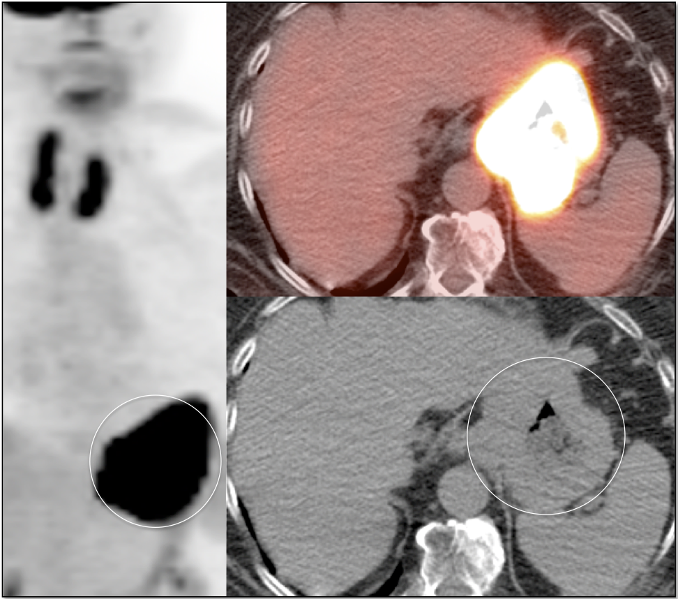While most patient’s presenting for PET/CT will already have a biopsy-proven tissue diagnosis, occasionally an incidental gastric cancer is detected.