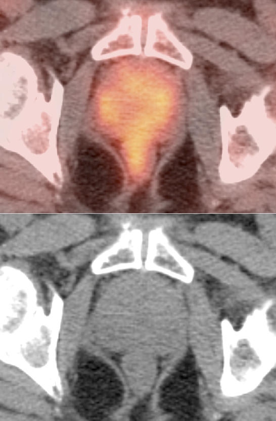 - Due to the poor FDG avidity of many prostate cancers, the overlap of increased uptake often associated with prostatitis, the marginal sensitivity of detecting pelvic nodal disease and the limitations created by superimposition of intense bladder activity, PET/CT currently has no role in the screening or diagnosis of prostate cancer. For similar reasons, it is generally of limited utility for initial staging of the disease.